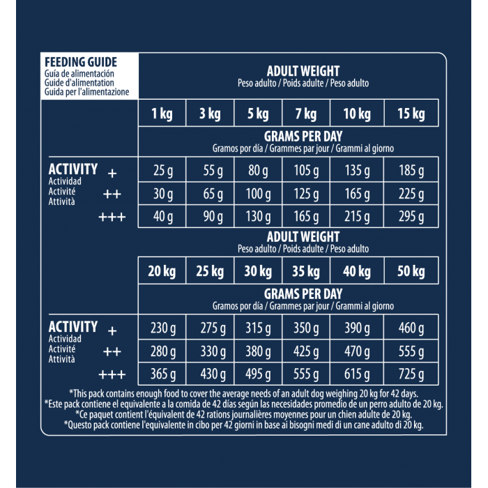 Sudėtis: Ėriena 17%, kukurūzų baltymai, visos kukurūzų dalys, ryžiai 14%, dehidratuoti ėrienos baltymai, dehidratuoti žirniai 4%, kukurūzų miltai, mineralai, hidrolizuotos mielės, runkelių minkštimas, lignoceliuliozė, žuvų taukai, cikorijų inulinas 0,4%.