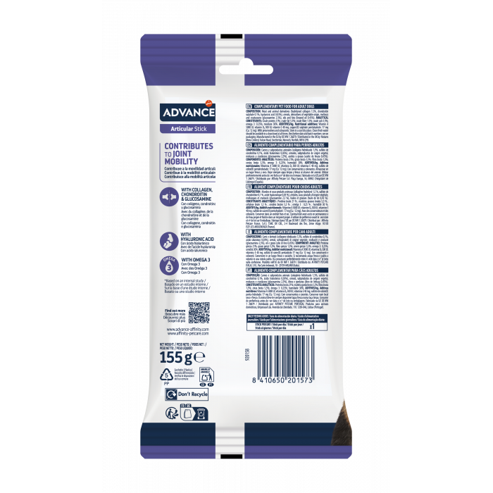 Advance articular care stick pašaro papildai šunims, skirti pagerinti sąnarių judrumą.