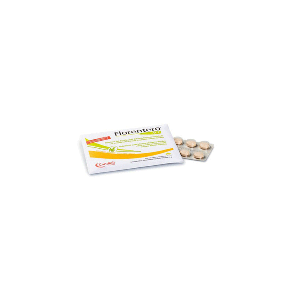 Candioli Florentero ACT tabletės šunims ir katėms, palengvinančios ūmius žarnyno sutrikimus ir stabdančios viduriavimą.
