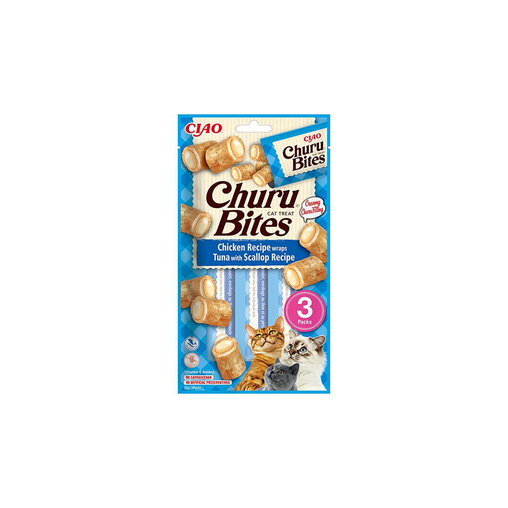 Churu Bites – minkšti kačių skanėstai su tunu ir šukutėmis.