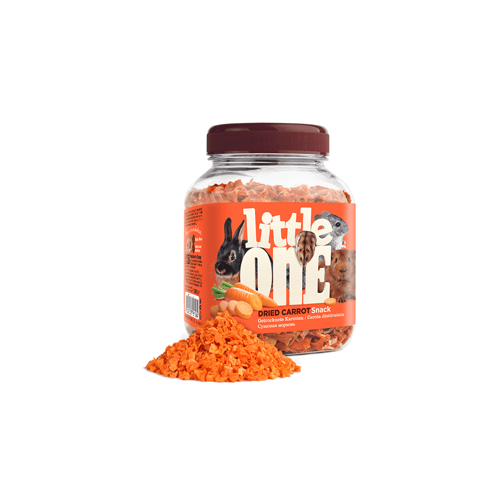 Little One skanėstai graužikams iš džiovintų morkų. Sveikas ir maistingas užkandis, stiprinantis augintinio imunitetą ir suteikiantis energijos.