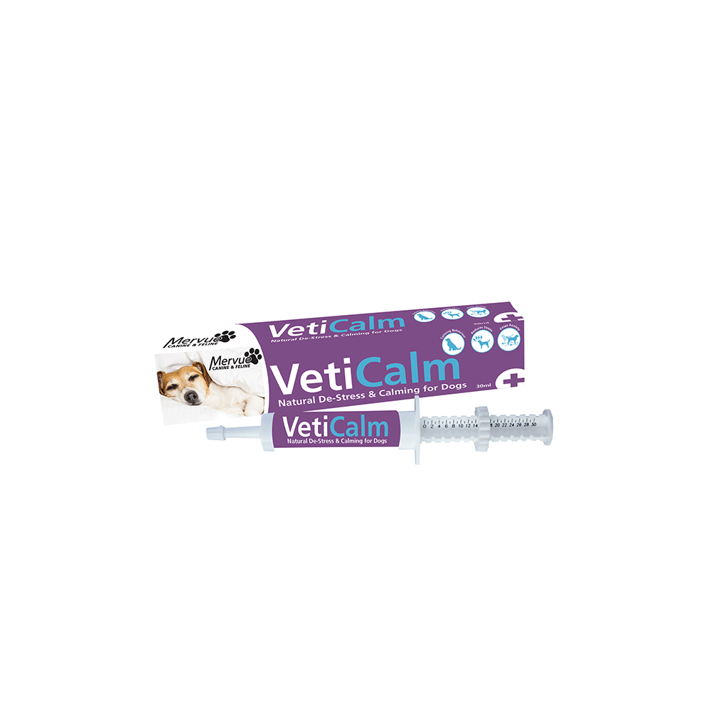 Mervue Veti Calm for Dogs, 30 ml – natūralus pašaro papildas šunims, padedantis sumažinti stresą ir nerimą.