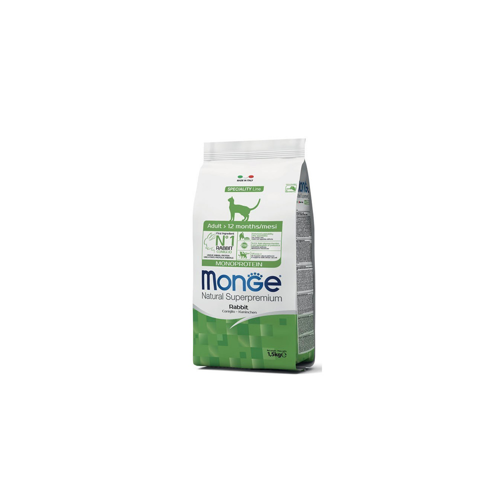 MONGE Monoprotein Rabbit Super Premium visavertis pašaras suaugusioms katėms su triušiena