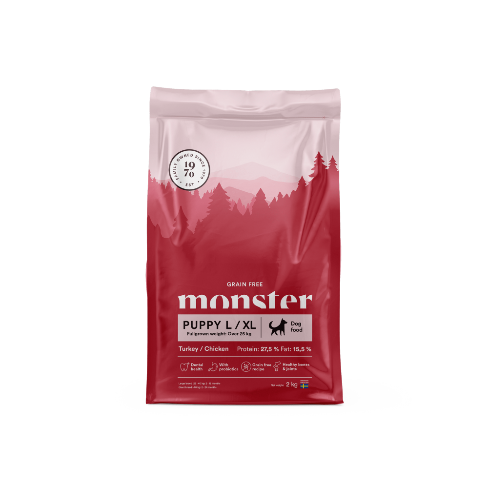 Kuo didesnis šuniukas - tuo daugiau meilės, tiesa? O meilę šuniui galima parodyti ir per kokybišką maistą! Monster Grain Free Puppy L/XL yra begrūdis, gausus mėsos pašaras augantiems didelių veislių šuniukams. Šis maistas šunims palaiko sveiką virškinimo sistemą, smegenų vystymąsį ir užtikrina, kad šunelis augtų tinkamai.
