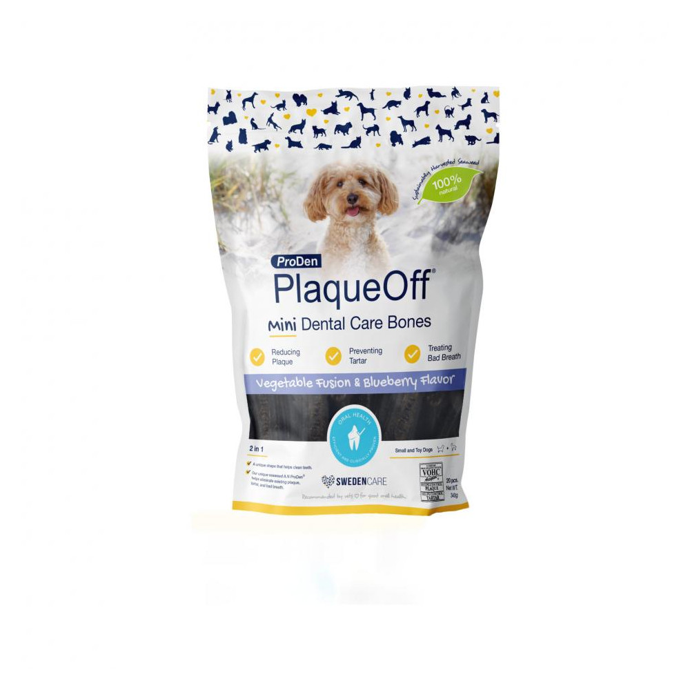 ProDen PlaqueOff Mini Dental Care Bones – dantų priežiūros skanėstai mėlynių skonio su daržovėmis