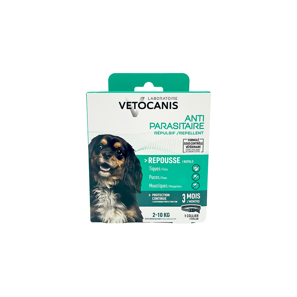Vetocanis antkaklis šunims nuo erkių, blusų ir uodų, veikiantis iki 3 mėnesių.
