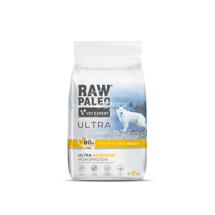 Kiaulienos ir paukštienos dehidratuoti baltymai, ryžiai, pupų luobelės, kiaulienos ir paukštienos hidrolizuoti baltymai, lignoceliuliozė, linų sėmenys, žuvų taukai, žirniai, bulvių krakmolas, gyvūlinės kilmės riebalai, mineralinės druskos, gysločio sėklų luobelės, fruktooligosacharidai, chitosanas, chondroitino sulfatas, pasterizuotos Lactobacillus acidophilus.