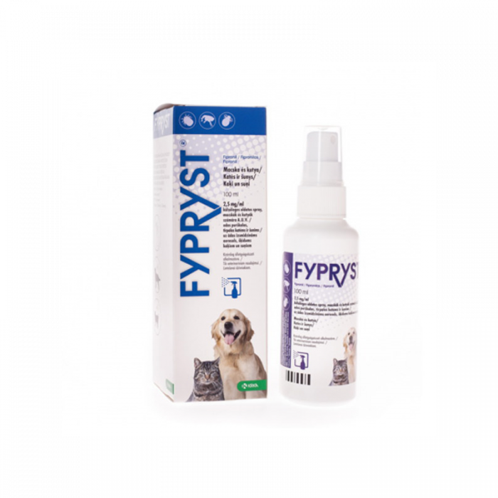 Žiūrėti Kaina 11,99 € Fypryst antiparazitinis odos purškalas katėms ir šunims, 2,5 mg/ml, 100 ml Fypryst purškalas nuo erkių, blusų ir plaukagraužių, tinkantis katėms ir šunims.